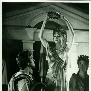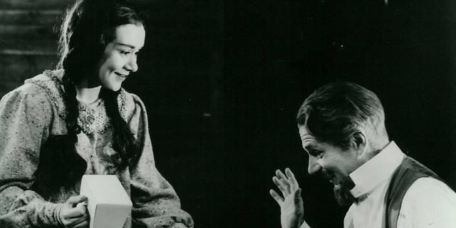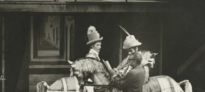 Audiences queued overnight for tickets, and the production was brought back the following year. To cope with the surge of people the Theatre brought to the quiet cathedral city of Chichester, a train service was put on to transfer audience members back to London after the evening’s performance. The Daily Mail commented that it was “the chattiest and most un-British train that British Rail runs”. Scroll down to explore some highlights from the first season, including silent colour film from our archive.