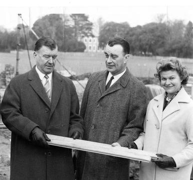 Famously, a programme about Stratford Festival Theatre in Canada inspired Leslie Evershed-Martin to found a theatre in Chichester. Stratford and Chichester are cities with a similar size, demographic and location - both are just over an one outside major cities London and Toronto. After hearing the programme, Evershed-Martin flew to Canada to meet director Tyrone Guthrie and discuss the founding of CFT, thus beginning our unique connection. Both theatres were built with a similar design and a thrust stage - the first of its kind in the UK in 400 years. Stratford even provided planks of Canadian maple wood for the Theatre's first stage and, in return, were presented with a Loving Cup (seen below) to mark the friendship.