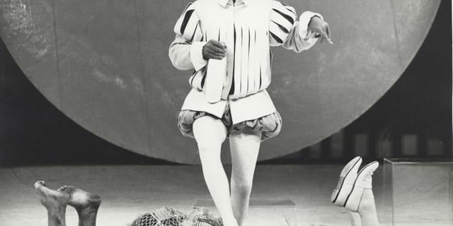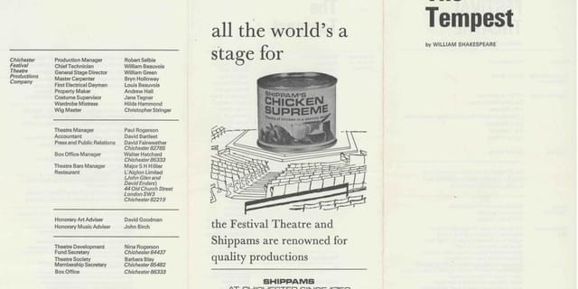 The 1968 season saw CFT's first and only staging of Shakespeare's The Tempest, with Artistic Director John Clements as Prospero alongside a young Simon Ward as Ferdinand. The set was designed by pioneering stage designer Ralph Koltai, with sweeping shades of white and abstract block shapes typical of Koltai's style during this period. The model box for the production is one of the few in existence from CFT's history, lovingly preserved at Pallant House Gallery. Explore a new 3D rendered version below.