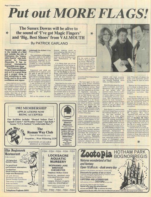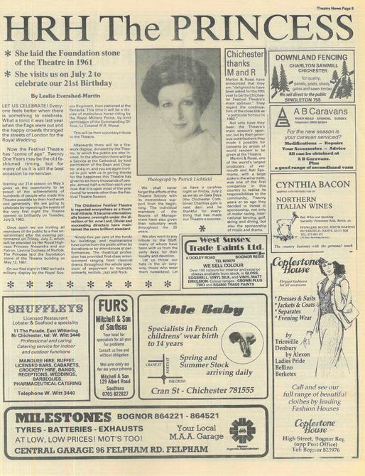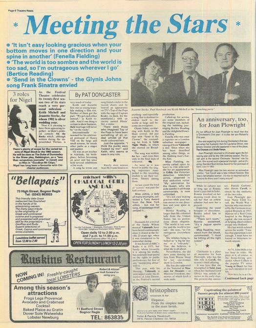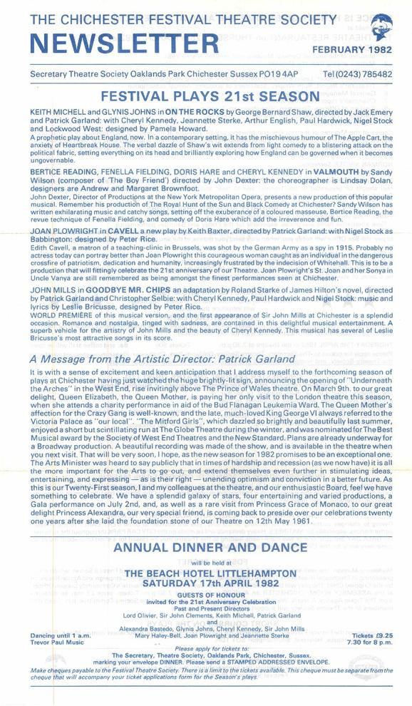 Newsletter for the Chichester Festival Theatre Society (now CFT Friends), 1982