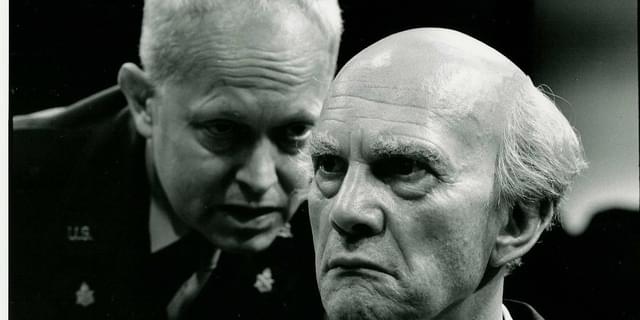 Although the 1995 season is widely remembered for the casting of Hollywood royalty Lauren Bacall in a production of The Visit in the Festival Theatre, theatregoers were also treated to an impressive array of writer-directors in the Minerva, including Harold Pinter and Alan Ayckbourn. Opening the Minerva season Pinter directed Ronald Harwood's Taking Sides, starring Michael Pennington, followed by Ayckbourn's play A Word From Our Sponsor. In the same season, also in the Minerva, Pinter appeared opposite Celia Imrie in his own play The Hothouse. It was the first revival of the play since its premiere in 1980, and the first time in 30 years that Pinter had acted in England under his own name (as opposed to his stage name David Baron). The production was a resounding success, a complete box office sell out, underscoring the Minerva's reputation for attracting master names and master plays.