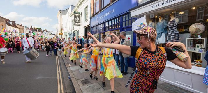 In June 2022, CFT orchestrated the Carnival of Lights, a grand parade of lanterns created by local schools, groups and artists dancing through the streets of Chichester to the Canal Basin as part of the district-wide Culture Spark celebrations.