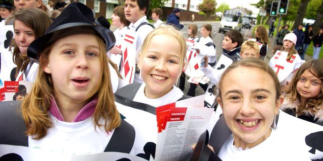 In 2005, for the third year running, Chichester Festival Theatre's Barclays Community Carnival brought colour, music, dance and celebration to the streets of Chichester. More than 1,000 people participated, including local arts groups, schools and CFYT members. The carnival procession started at the Theatre and snaked its way through the city centre, culminating in a celebration on Oaklands Park.