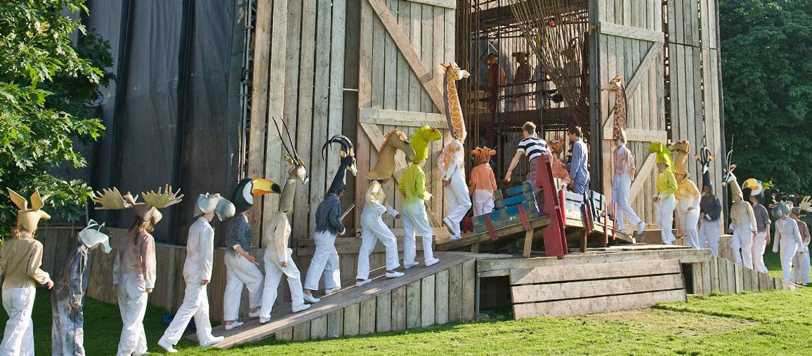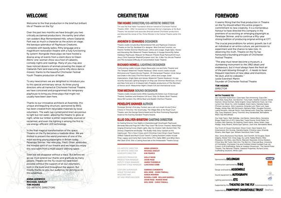 As part of CFT's 50th anniversary celebrations, an experimental temporary venue was commissioned for the grounds of Oaklands Park: Theatre on the Fly. The structure was designed by Assemble and inspired by the machinery of a theatrical fly tower, with exposed mechanisms transforming the building into a theatrical spectacle extending into the surrounding parkland.