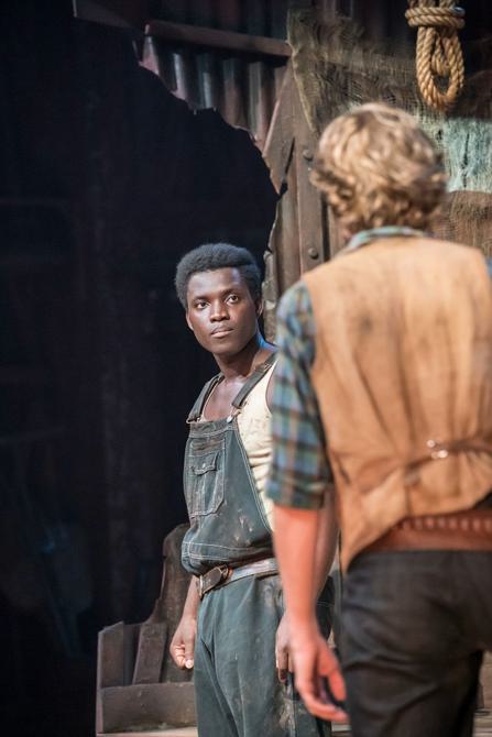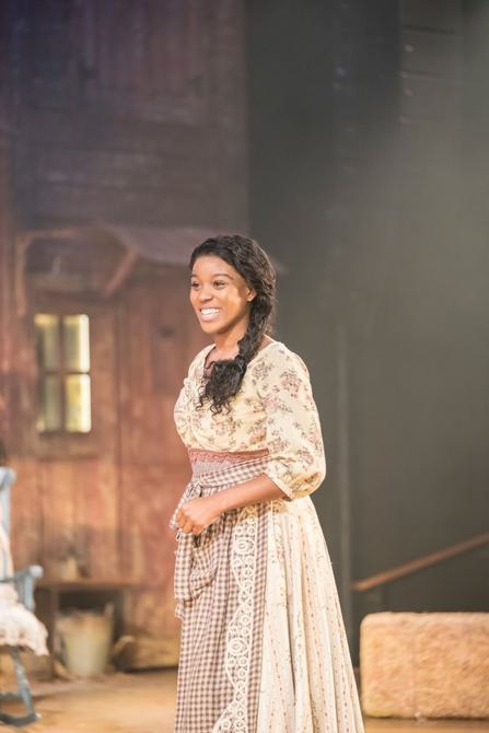 Award-winning director Jeremy Sams returned to Chichester delivering a fresh interpretation focusing on youth and new beginnings, emphasising the themes of violence in contrast with youthful naivety. A memorable set by Simon Higlett extended the stage upstage into the loading dock to give the audience the sense of the vast plains of the American South. In line with Sams' interpretation, two young actors were cast in the leads, both making CFT debuts: Amara Okereke as the independent female protagonist Laurey and Hyoie O’Grady as cowboy Curly. In 2022, Okereke starred in the West End's revival of My Fair Lady.
