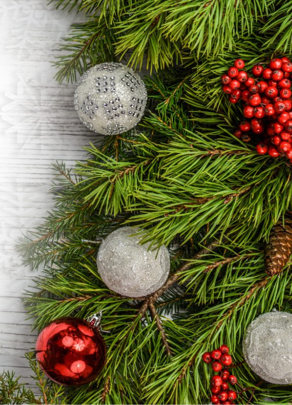 - Felt red robins and knitted tree decorations, upcycled baubles, bows and various festive tree ornaments.